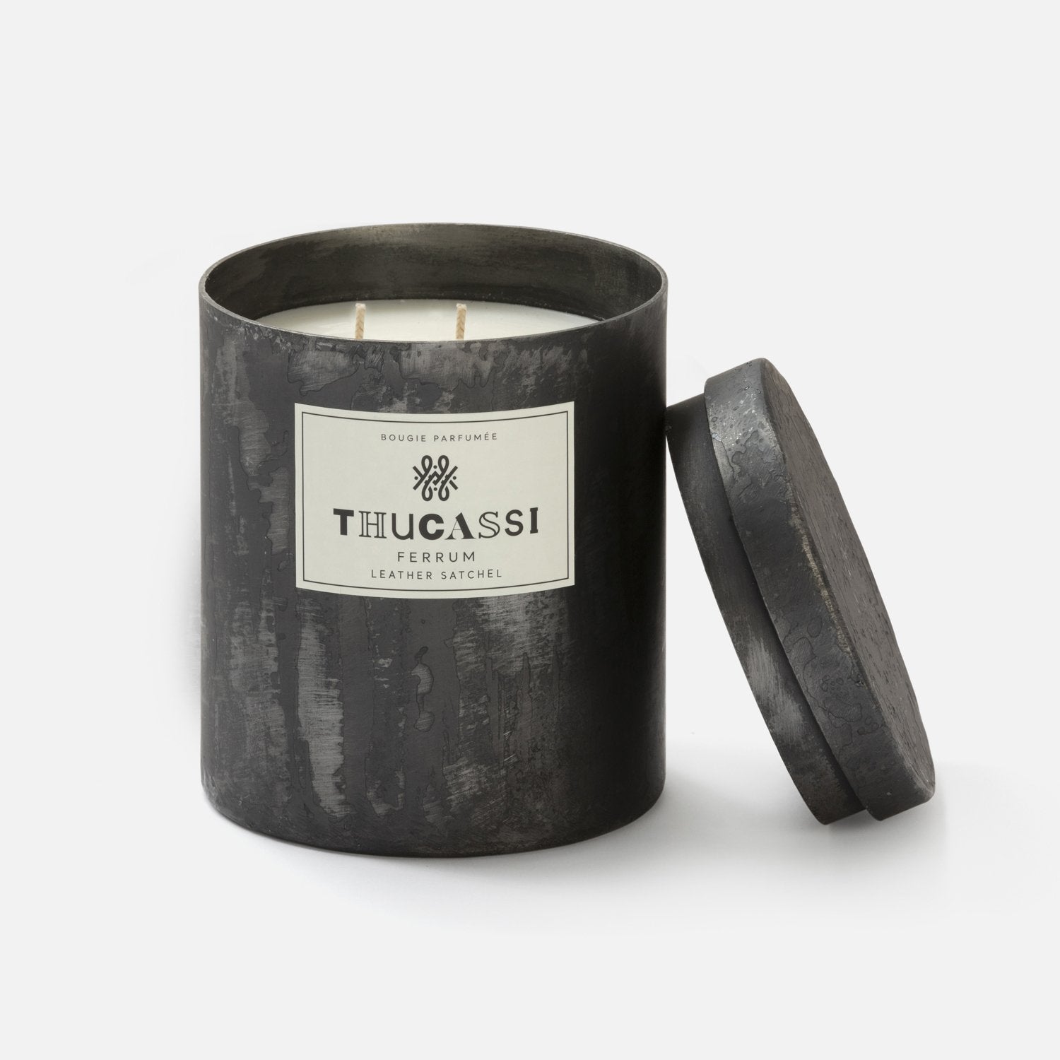 Thucassi Ferrum Candle, Leather Satchel 400, 28 oz Metal
