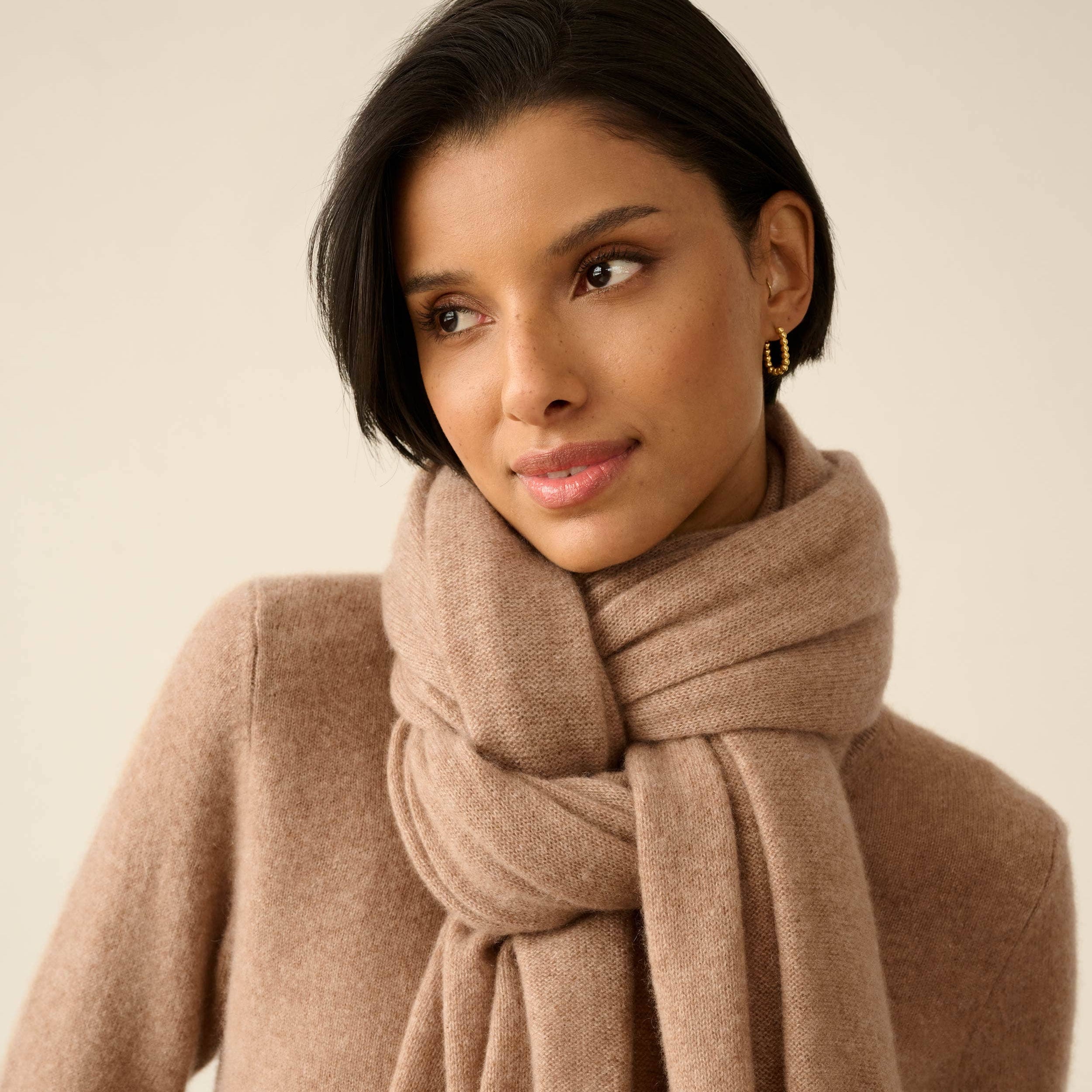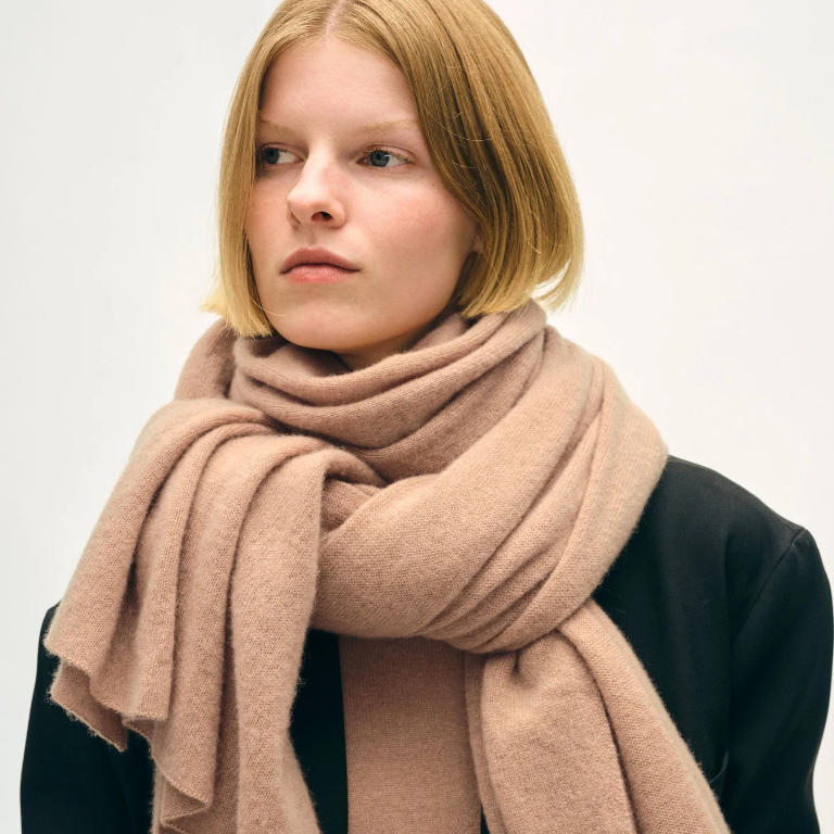 This incredibly soft and high quality wrap is the perfect size to take anywhere and made from 100% cashmere sourced sustainably from Mongolia. In a classic camel hue, you can wear it with almost anything—as a shawl, scarf, snood, shrug or blanket all year long.