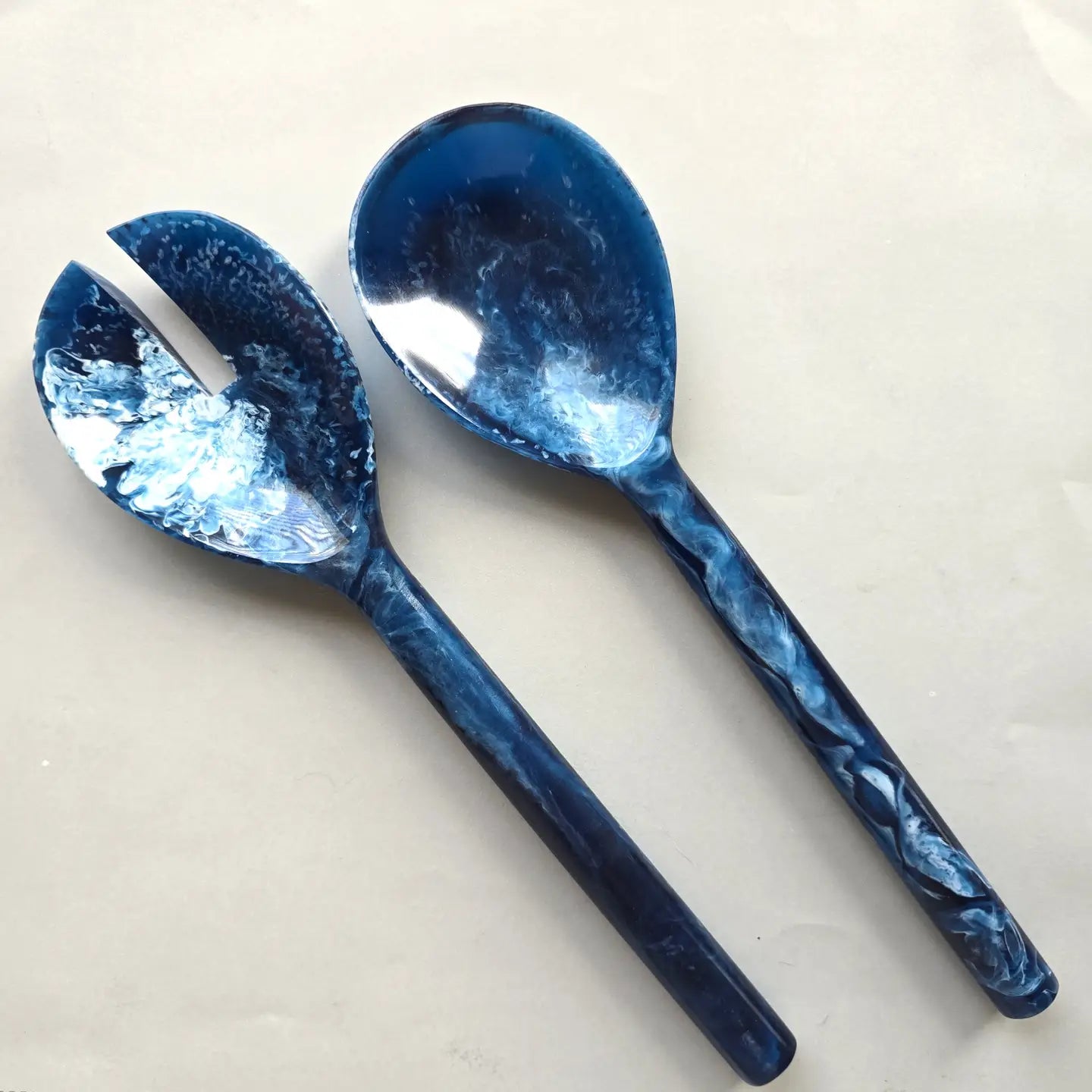These hand poured resin salad servers feature a vibrant swirled design, making each set completely one of a kind. Both functional and decorative, they bring a pop of color to everyday dining and effortless entertaining.