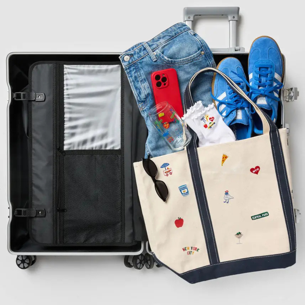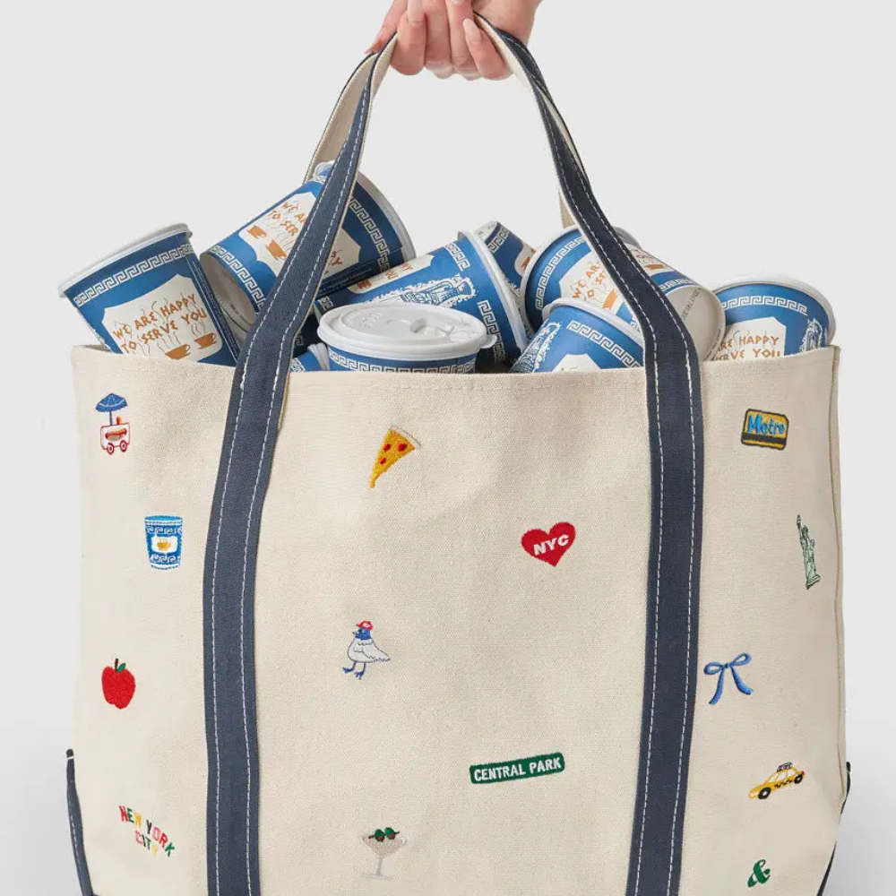 This carryall is well-suited for farmer's market strolls, shopping downtown or running errands. No matter where you take it, it's a little slice of New York City with iconic images like the Statue of Liberty, New York pizza, Central Park signs and sidewalk carts.
