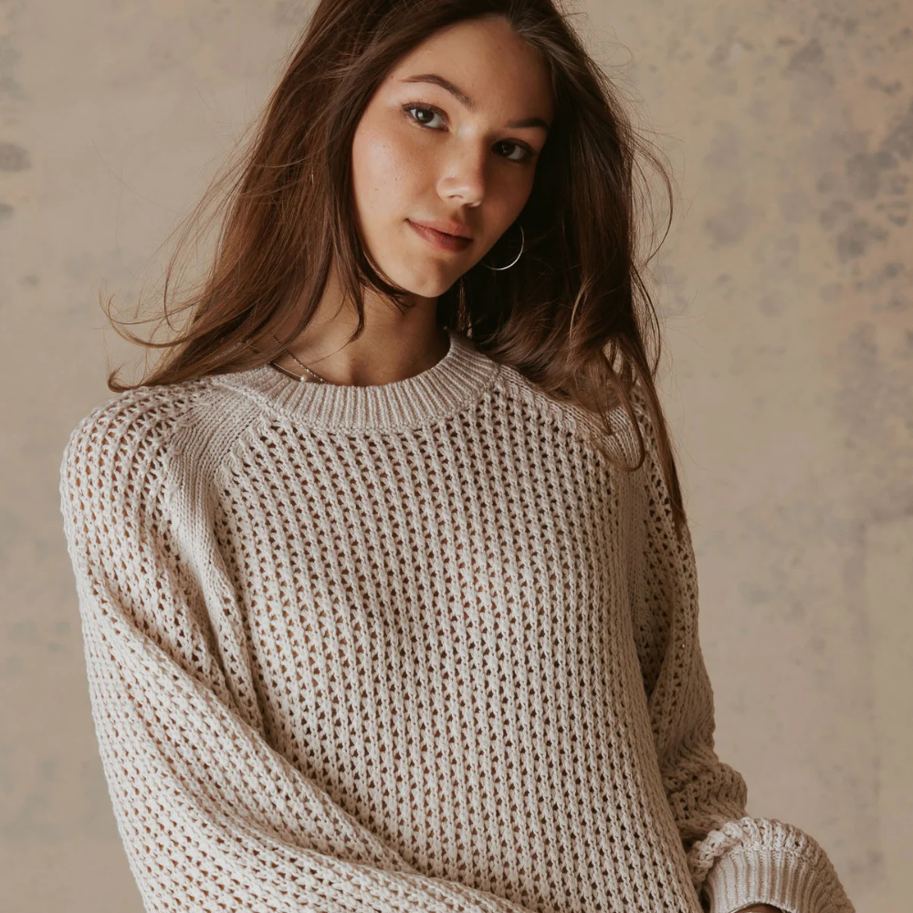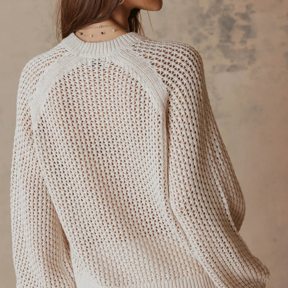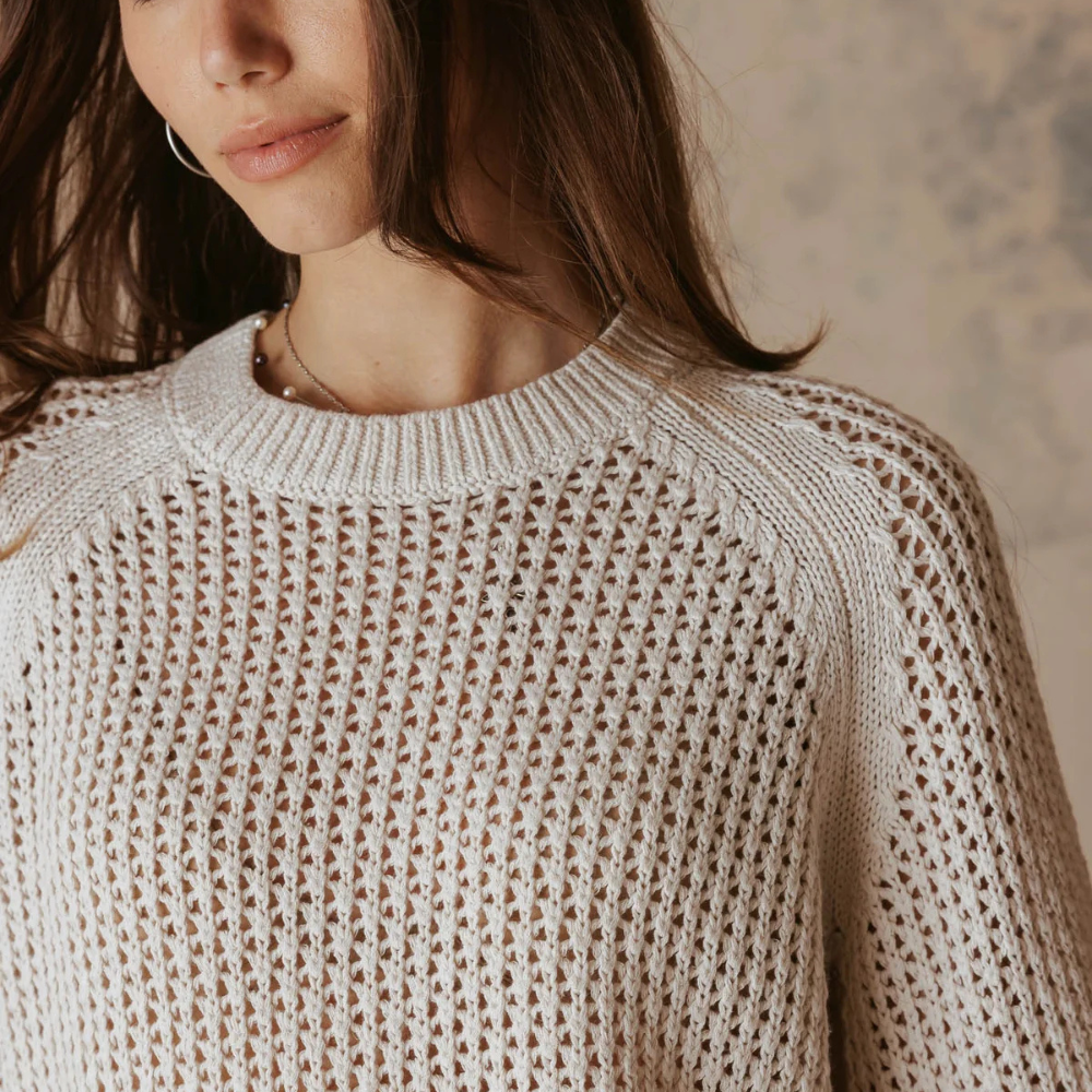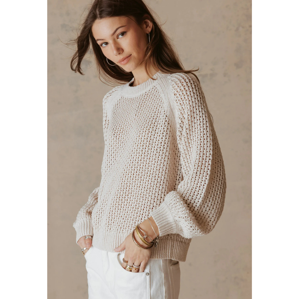 The Lanette from 27 Miles is a crewneck open-stitch knit designed with a slight lantern sleeve for soft volume and modern shape. Lightweight and airy with an elevated feel, It's an effortless way to add interest and texture to any outfit.