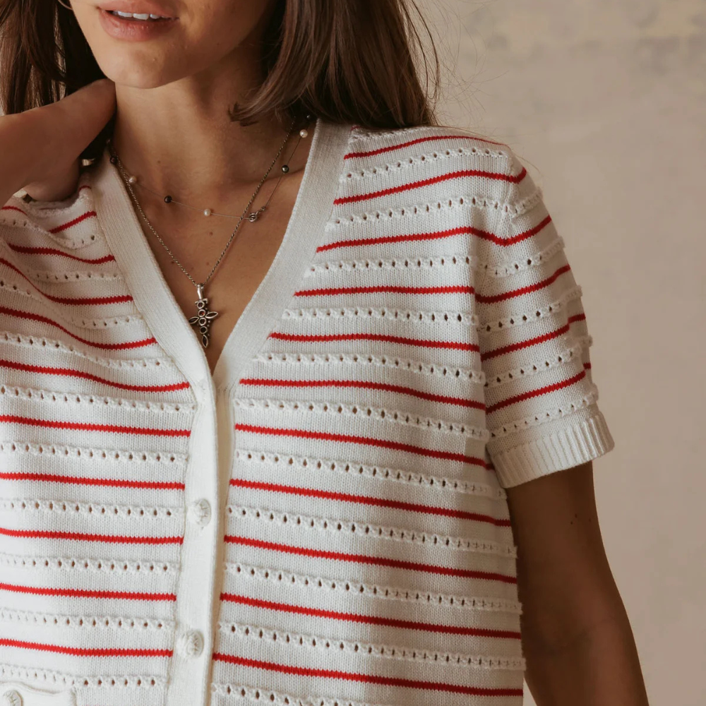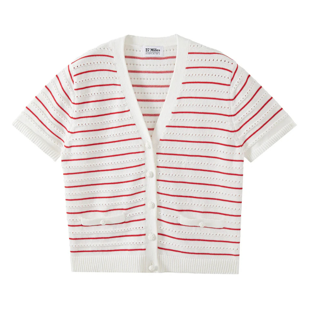 Yelena Cotton Short-Sleeve Stripe Cardigan