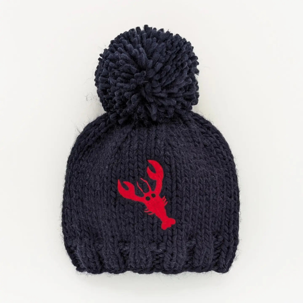 This adorable lobster beanie hat is perfect for seaside escapades or any time your baby needs a cozy layer. Made with chunky indigo blue yarn, it boasts a cute embroidered lobster design on the front. Each hat is partially knit from recycled, sustainable polyester yarn made from plastic bottles.