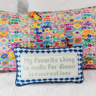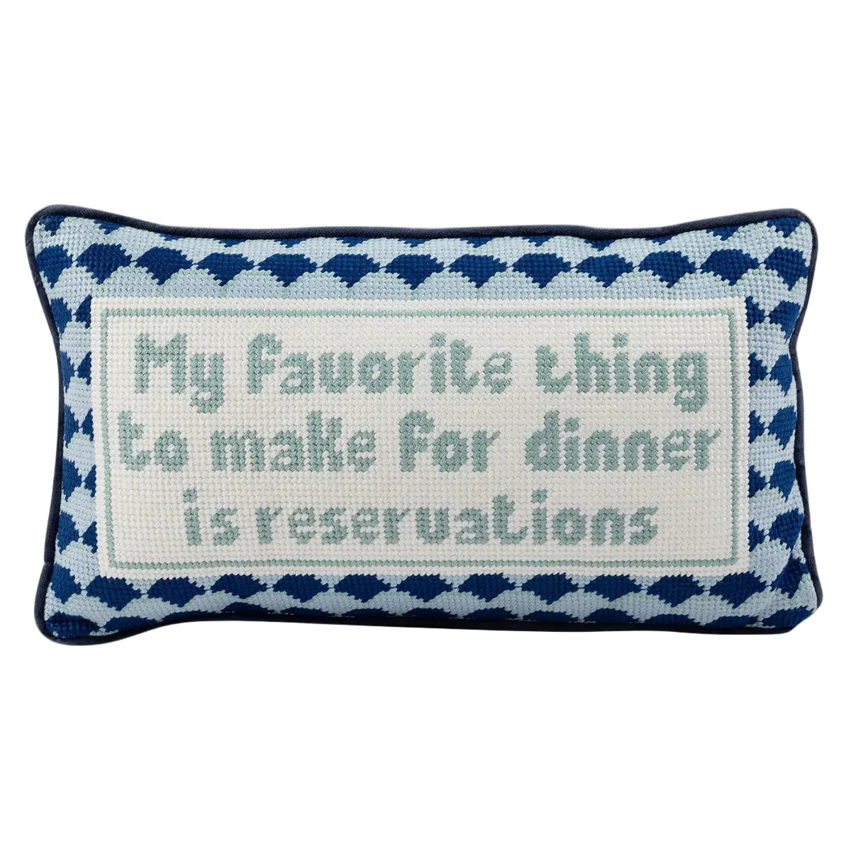 For the ones who know their culinary skills are best served outside the kitchen. This pillow is for those who say, "My favorite thing to make for dinner is reservations." Embrace the latest joy-inspired décor movement with one of Furbish's needlepoint and statement pillows. Our pillows feature vibrant patterns, playful prints and uniquely you sayings that spark happiness and guarantee everyday smiles.