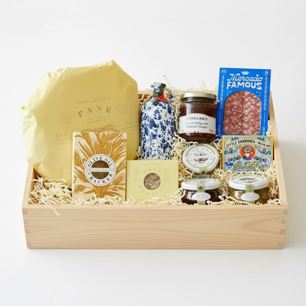 A generous spread for anyone who loves bold flavor and beautiful hosting moments. This curated box brings together a mix of artisanal pantry favorites, rich savory accents, and specialty small bites that make entertaining effortless. Perfect for grazing boards, cozy nights in, or gifting to the food lover who appreciates the very best.