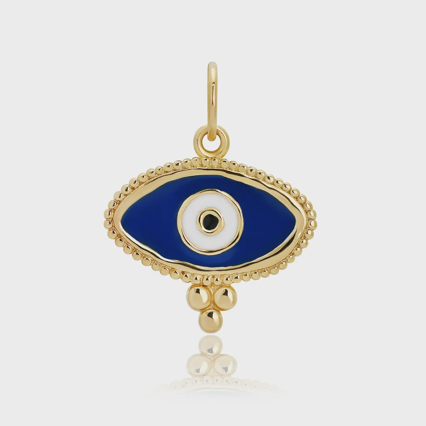 This navy and gold evil eye is a modern take on a centuries-old symbol of protection and guidance. The evil eye has served as a talisman with a sense of reverence for a higher power and spiritual guidance.