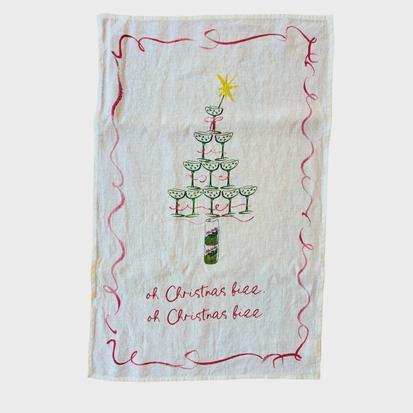 Oh Christmas Fizz - Champagne Christmas Tree Linen Tea Towel
