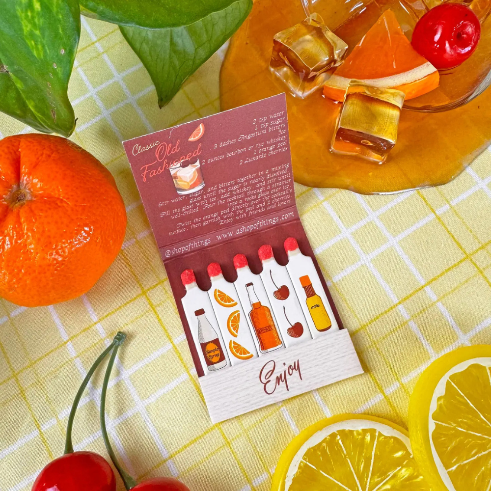 Meet the matchbook that brings timeless cocktail charm to your bar cart. Open it up to find the classic recipe printed inside, and strike a match to reveal an illustrated ingredient on each stick.
