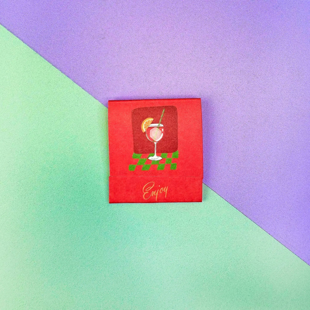 Bring a pop of aperitivo-hour joy to your home with the Spritz matchbook. Open it up to find the classic recipe printed inside, and strike a match to reveal an illustrated ingredient on each stick.