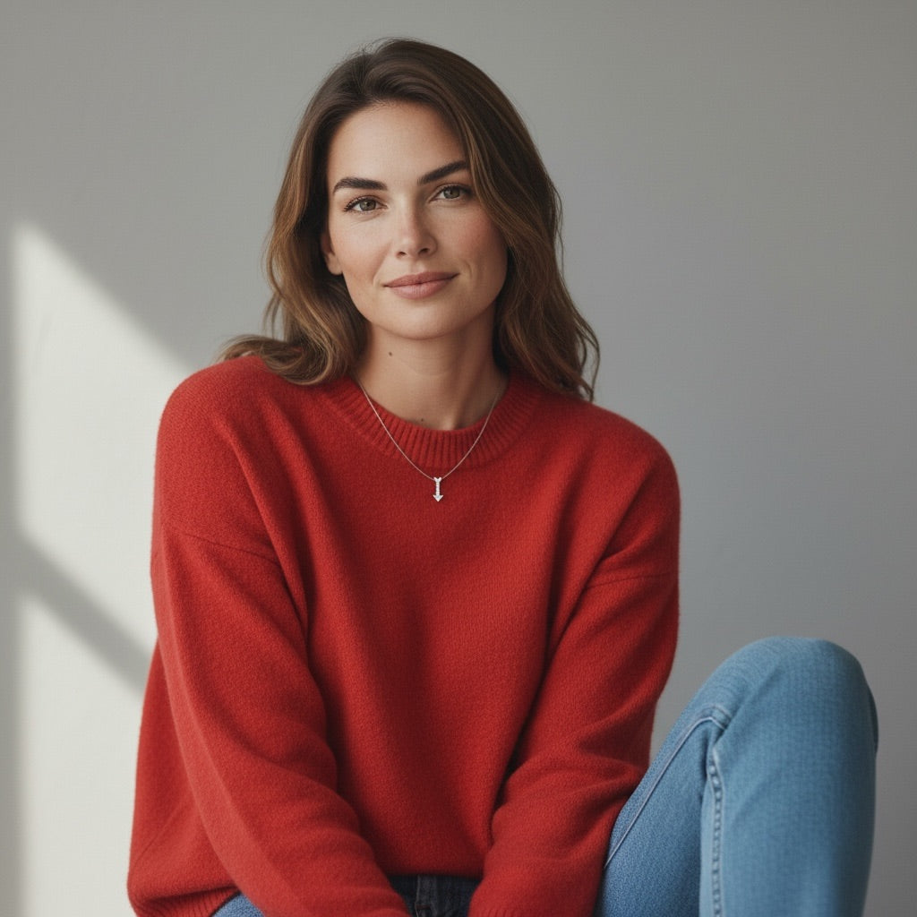 A delicate diamond arrow pendant crafted in 14K gold, symbolizing direction, strength, and intention. Pavé-set diamonds add subtle sparkle while the clean, graphic silhouette keeps it modern and effortless.