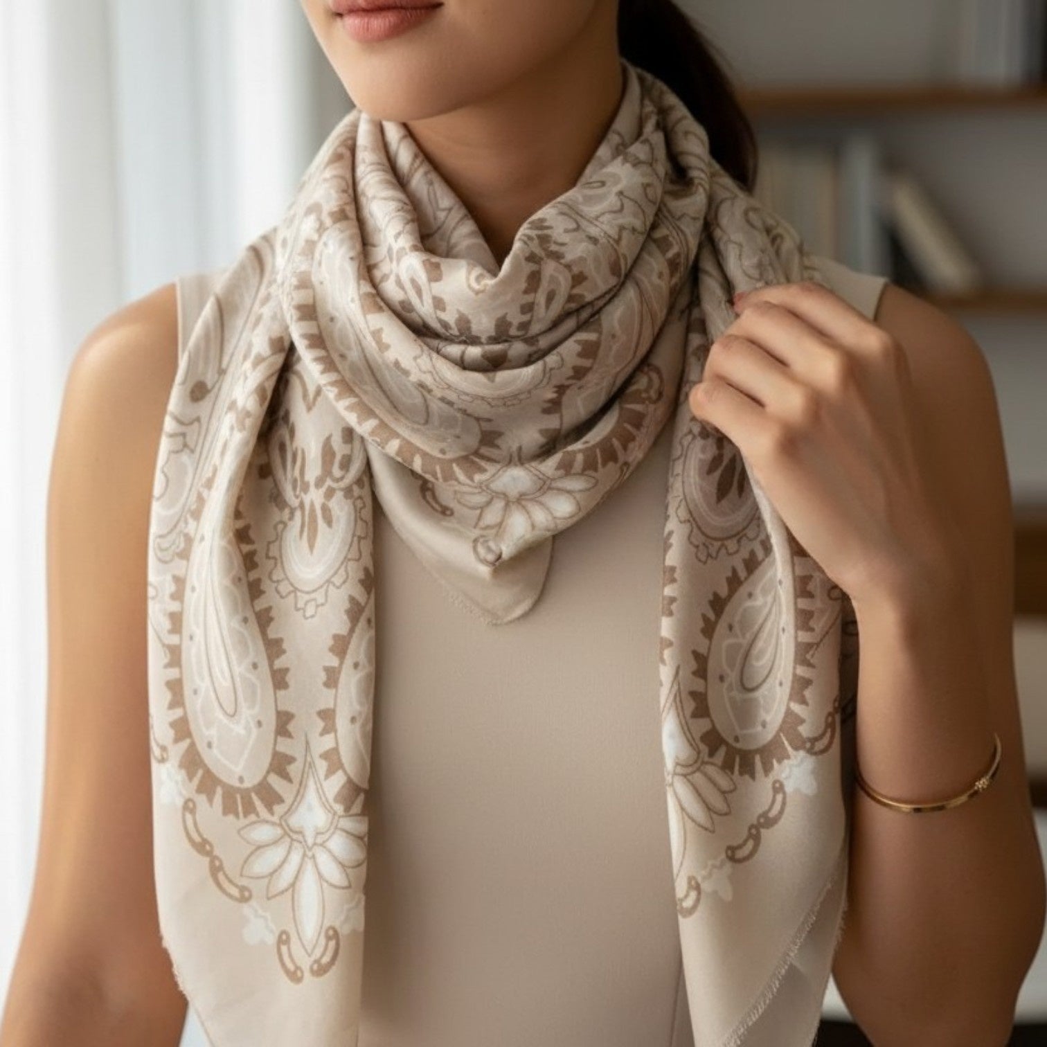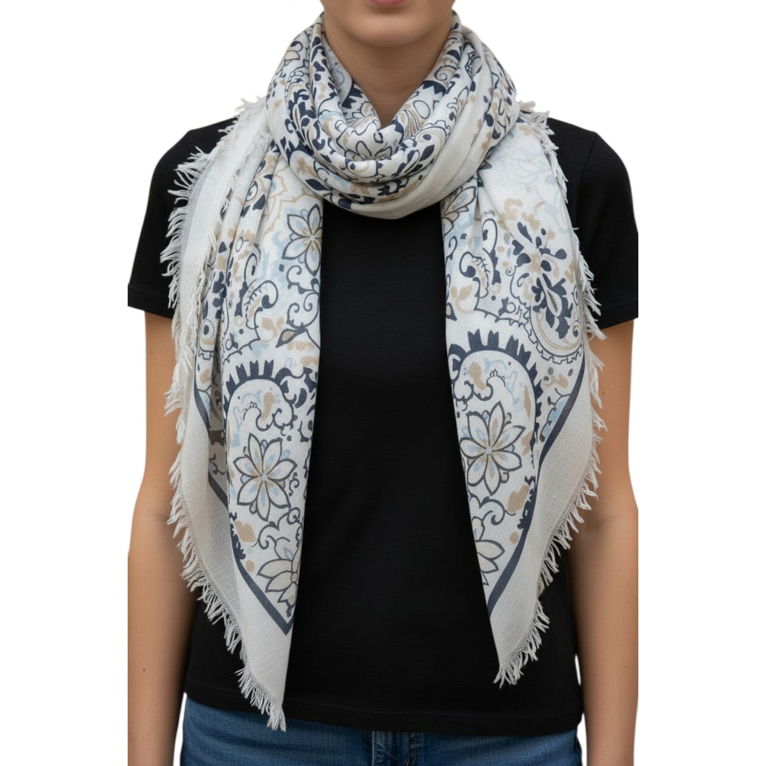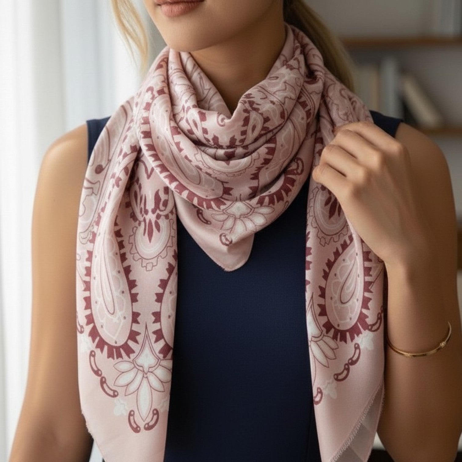 Designed to elevate even the simplest look, this oversized square scarf features a timeless bandana pattern with a modern edge. Crafted from a soft viscose-cotton blend, it has a lightweight drape with just enough warmth for year-round wear. Fold it, knot it, or wear it loose over the shoulders, the styling options are endless.