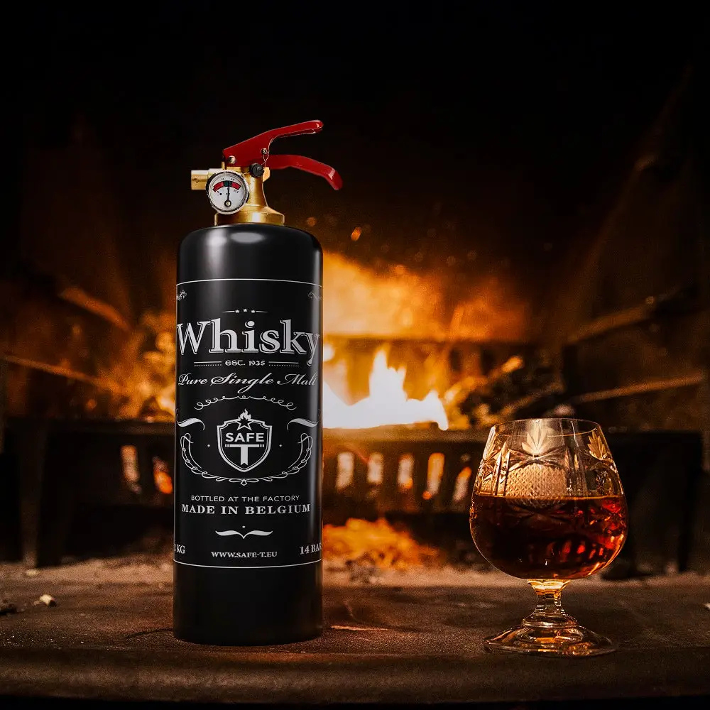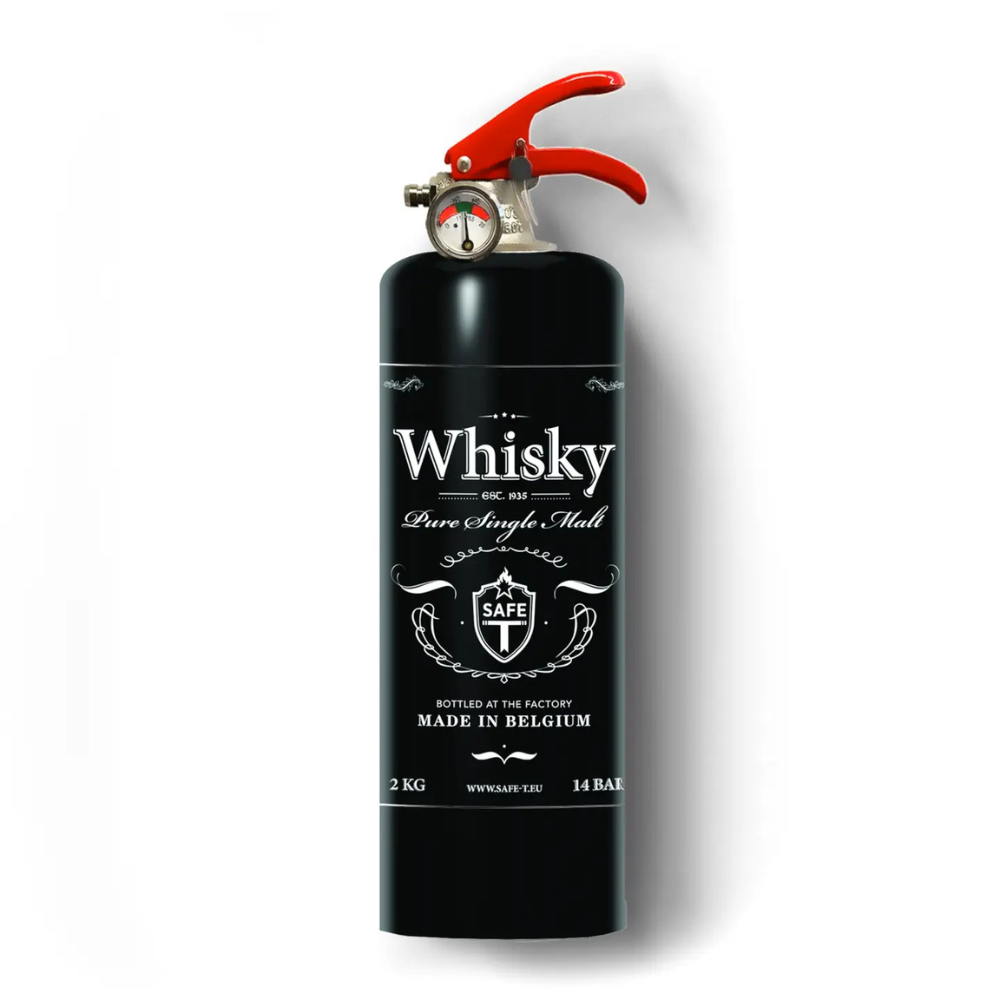 The Safe-T WHISKY is a fire extinguisher with character—crafted for those who appreciate both safety and style. Inspired by the timeless appeal of fine spirits, this design blends elegance and wit, bringing a clever touch to an everyday essential. Attractive and unexpected, it’s made to be displayed proudly, becoming part of your home décor while staying ready for action. Built to the highest CE standards and made from premium materials, this is functional beauty bottled at the source.