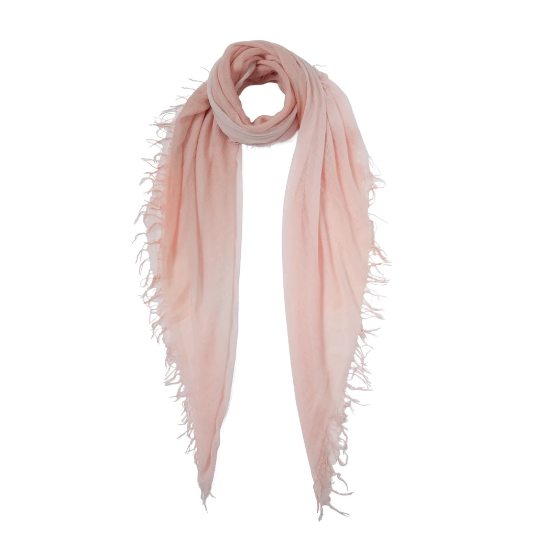 A rosy version of Chan Luu's cashmere and silk fringed scarf, this dip dyed accessory is super soft and lightweight so you can wear it all year.