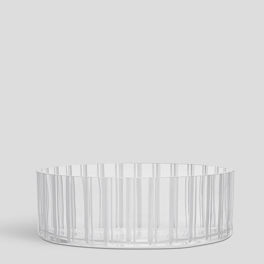 The bowl with a stripe motif in the Cut In Number collection from Orrefors is ideal as a serving bowl or simply as a decorative object. The satin finished cuts on the bowl beautifully emphasize the transparency of the clear crystal. It's designed by Ingegerd Råman.