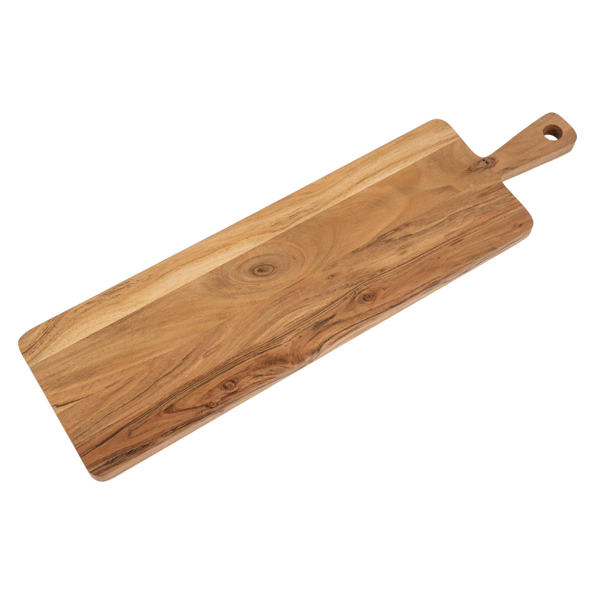 Made of environmentally friendly acacia wood, the farmhouse footed serving board from Indaba Trading has a distinct and beautiful wood grain that adds dimension and makes each piece unique. Functional in nature with a long handled and footed design, it feels weighty and durable. Place it down the centre of the table to share charcuterie, cheese and sliced bread with the table, or use it as the base layer for a decorative centrepiece to compete your tablescape.