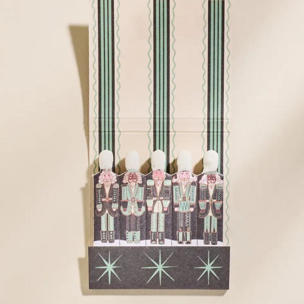Bring holiday charm to your home with this nutcracker matchbook, perfect for adding a little festive magic to your candle display. With a stylish printed cover and 10 double-sided matchsticks, they make a thoughtful gift or a fun detail next to your favorite candles. Functional and decorative, they’re as pretty as they are useful.