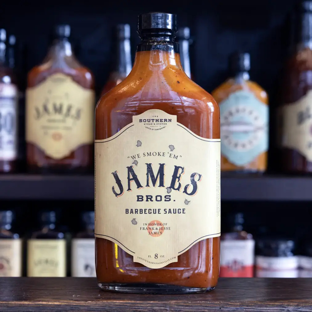 The saying "We Smoke 'Em," inspired by the notorious Jesse James, is the mantra on this barbecue sauce from James Bros BBQ Sauce. It has a hint of spice.