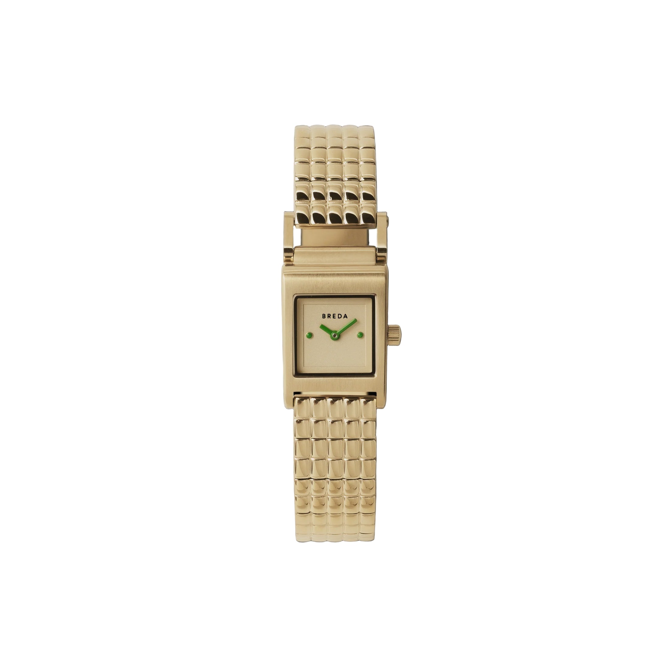 Embracing moments of resiliency, the Revel carries a petite 18 mm squared case and 14 mm bracelet. The delicate buckle feature and jewelry clasp paired with the squared face of this gold timeless is a statement of confidence and independence.