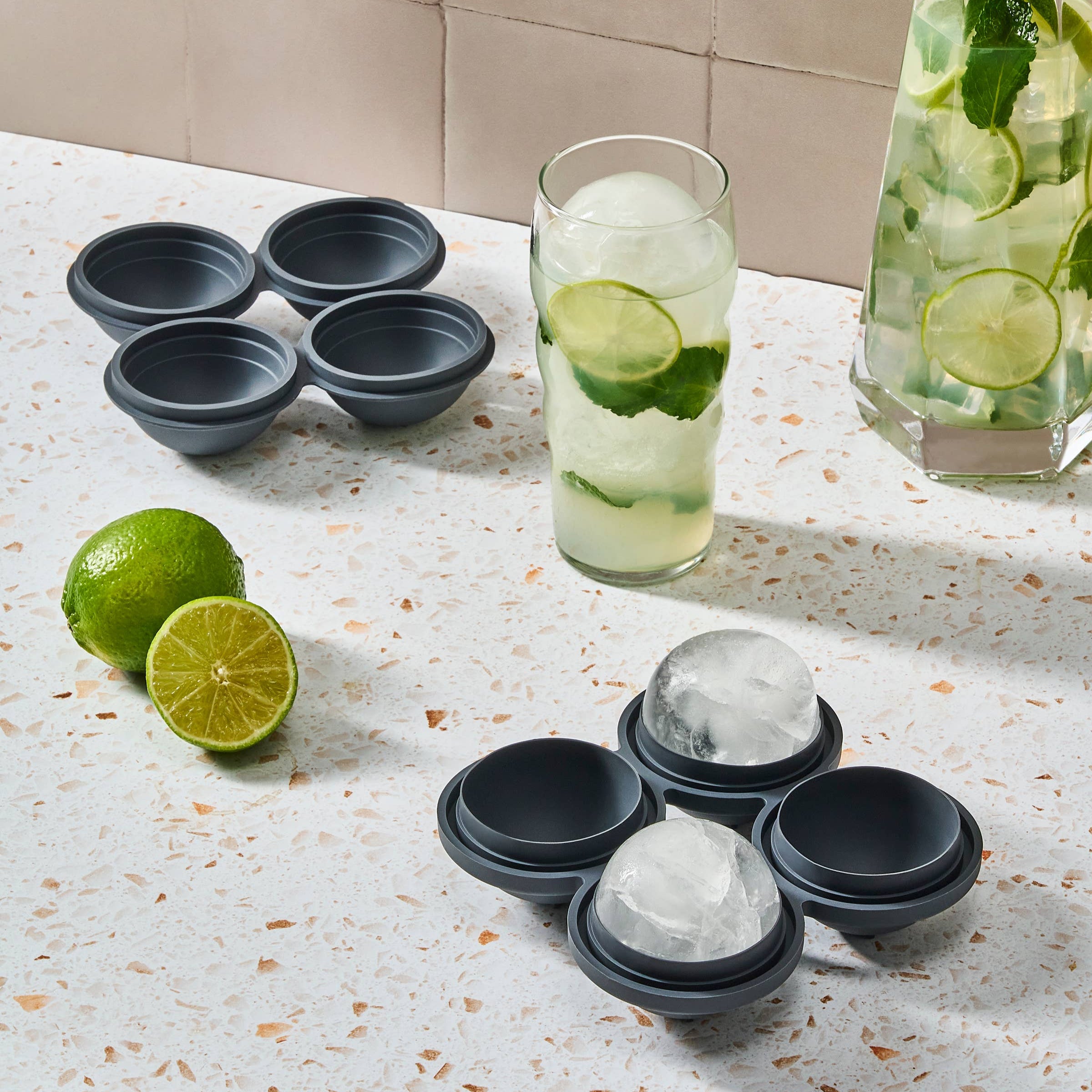 This tray makes four perfect 2 1/2” ice spheres that melt slower, keeping your drink colder, longer. A must have for the home bartender! The sloped internal molds combined with an external overflow gauge create seamless spheres every time. Individual molds easily pop out a single frozen sphere at a time without having to twist and crack the tray. The large surface area makes the spheres slow melting, keeping frozen longer for slow sippers. Also great for popping into pitchers and punch bowls for festive chilling!